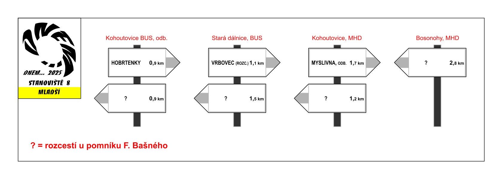 Rozcestníky odpovídají skutečným místům s rozcestníky na mapě, včetně vzdálenosti po značené cestě k jednomu ze sousedních jiných rozcestníků (vzdálenosti jsou na herní mapě také vyznačeny). Místo s otazníkem najdeme jako sousední rozcestník směrem na opačnou stranu s odpovídající vzdáleností. Všechna čtyři místa označena otazníkem odpovídají rozcestníku u památníku F. Bašného.